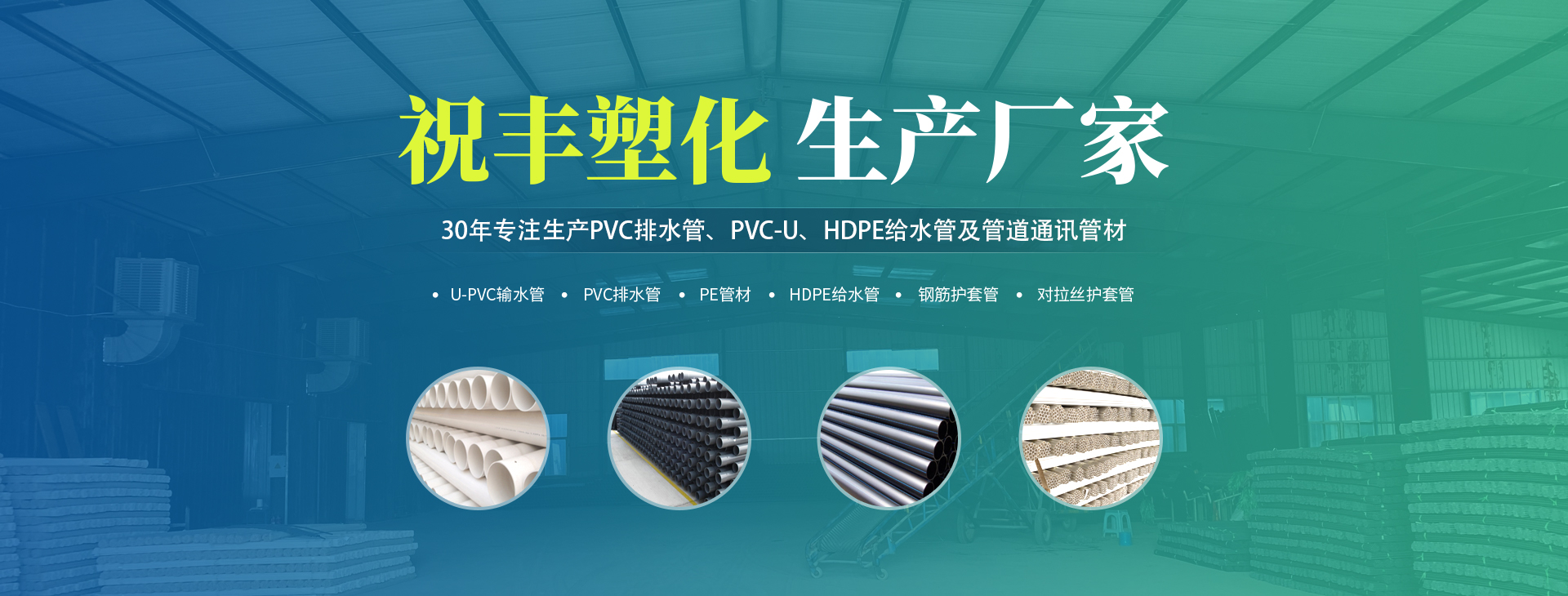 安陽市祝豐塑化有限公司坐落在滑縣工業(yè)園區(qū),東臨大廣高速,西臨京珠高速,是鄭州、鶴壁、安陽、濮陽四個城市的輸紐,交通便利、環(huán)境優(yōu)美。 公司始建于八十年代,經(jīng)過二十余年的艱辛創(chuàng)業(yè),規(guī)模不斷壯大,由十多萬元資產(chǎn)的小廠,發(fā)展到現(xiàn)占地面積達(dá)一萬多平,建筑面積一萬平,資產(chǎn)2000多萬元管材生產(chǎn)企業(yè)。公司生產(chǎn)PVC-U、PVC排水管、HDPE給水管、鋼筋護(hù)套管管道通訊管材等產(chǎn)品,廣泛用于農(nóng)田節(jié)水、高山引水、人畜用水、建筑、電力通訊等多種用途,品種齊全。為了滿足用戶需求,可承攬各種給水、節(jié)水、灌溉工程。“祝豐塑化”憑借強(qiáng)勁的實力,優(yōu)良的管理水平?!耙再|(zhì)量求生存,以信譽求發(fā)展”的原則全力以赴和大家共同塑造美好未來。..